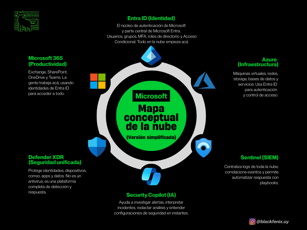 A esto se suma que Microsoft cambia nombres, portales y modelos de administración con frecuencia y temas como Entra, Azure, Microsoft 365 y Defender que si bien no son lo mismo, están totalmente relacionados.